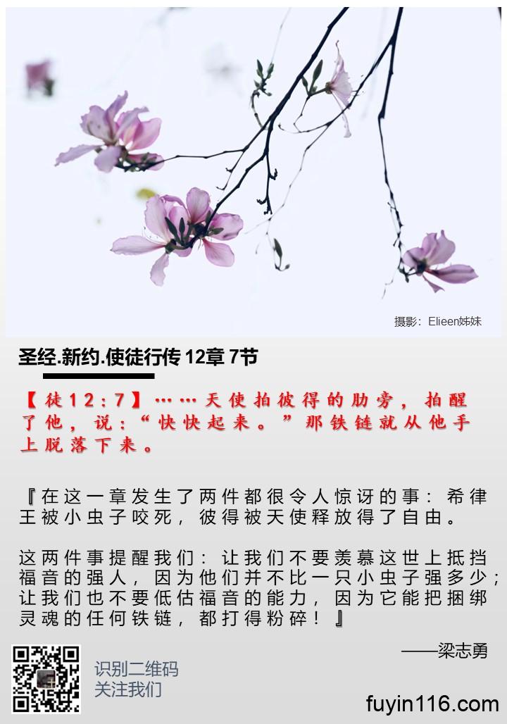 【徒12:7】……天使拍彼得的肋旁,拍醒了他,说:“快快起来。”那铁链就从他手上脱落下来。