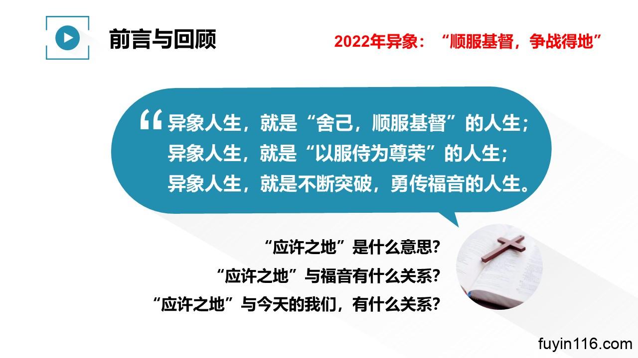 “顺 服 基 督,争 战 得 地”,是主赐给我们2022年的异象。