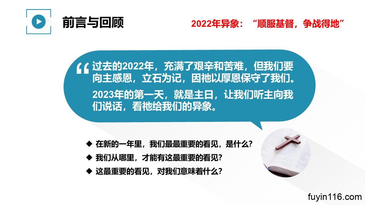2023年1月1日,新年的第一天,正好就是主日,是我们敬拜至高上帝的日子。我们要有一次新年专题分享: