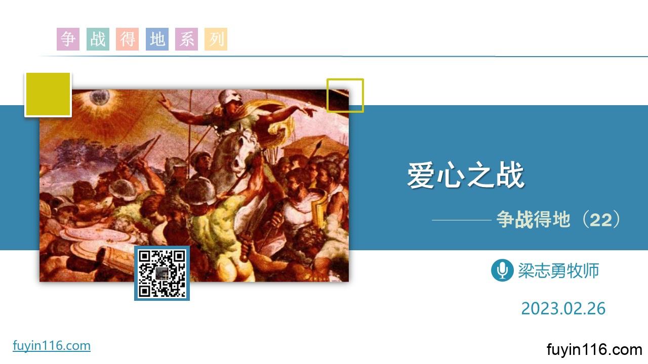 在2月26日,我们继续《争战得地》系列的分享,第22讲: