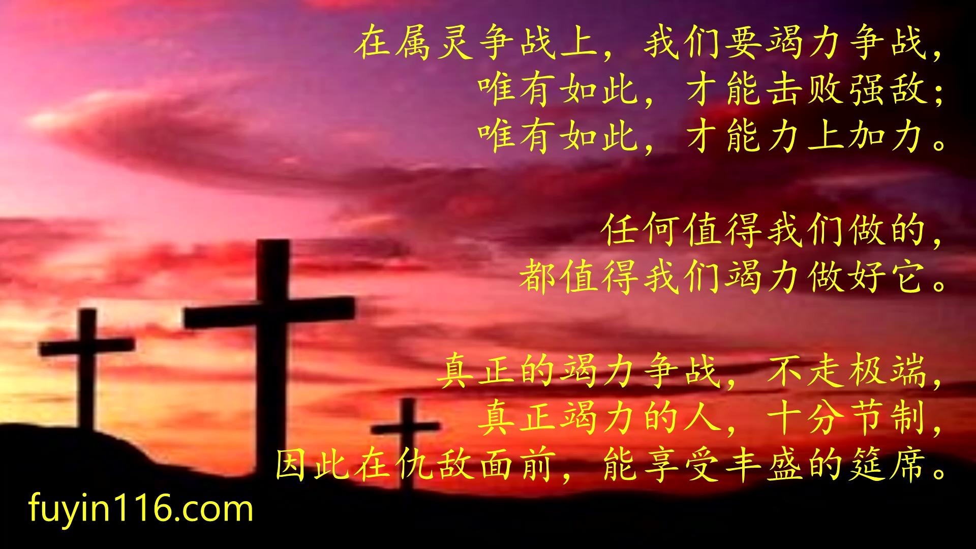 1)让我们常常向上帝祷告,求主赐给我们“竭力争战”的信心和勇气。