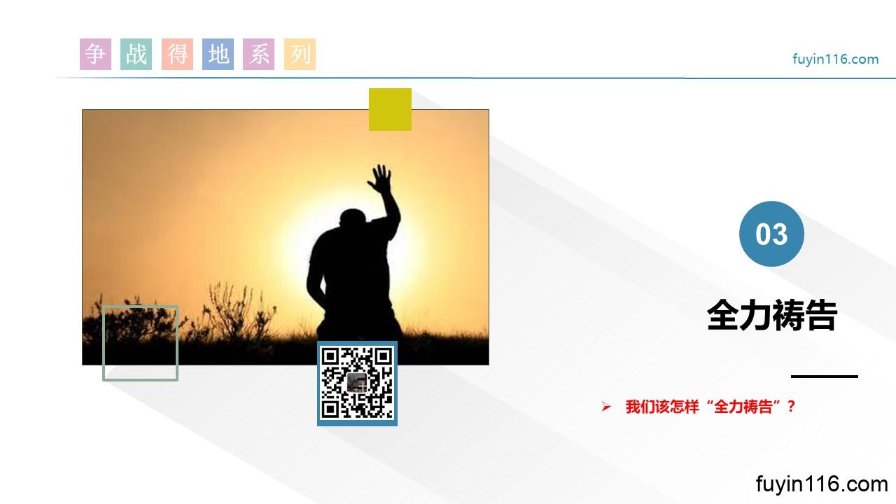 求你赐福我们所讲的《争战得地》系列信息,借着我们主日讲台的信息分享,让你的百姓更认识主的美意,更顺服主的带领。