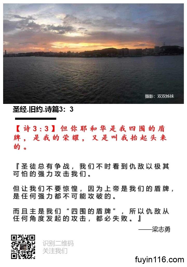 【诗3:3】但你耶和华是我四围的盾牌,是我的荣耀,又是叫我抬起头来的。