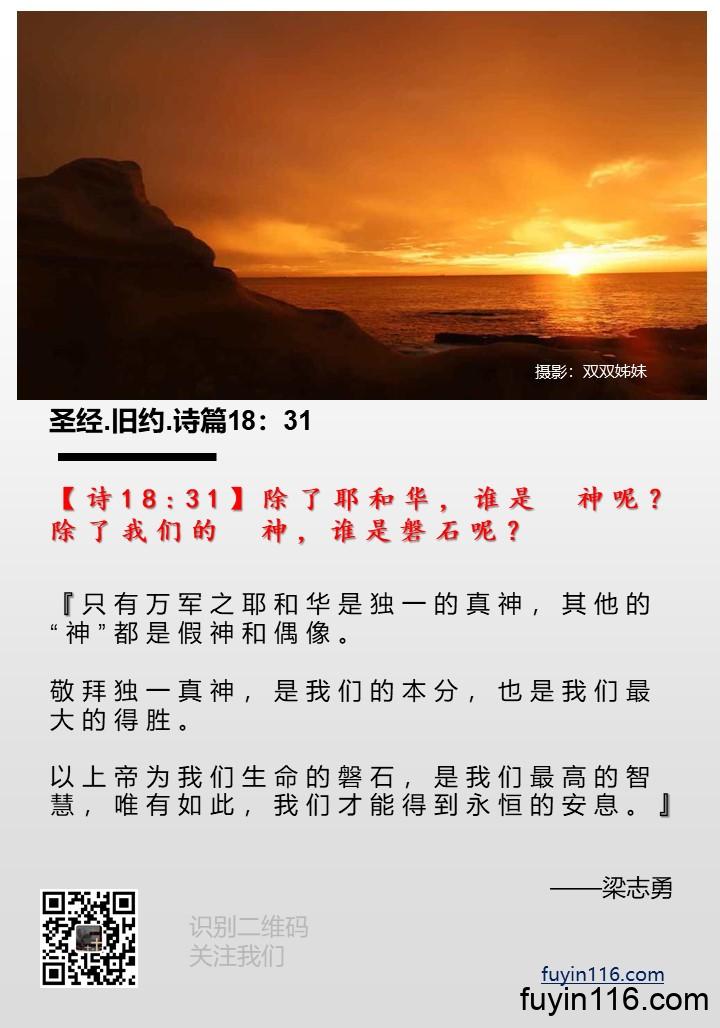 【诗18:31】除了耶和华,谁是 神呢?除了我们的 神,谁是磐石呢?