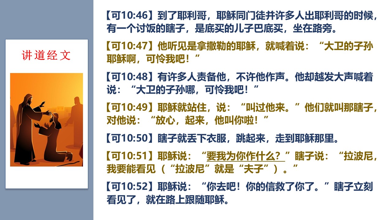在对瞎子巴底买的医治中,我们对主耶稣,有了哪些最重要的新认识?
