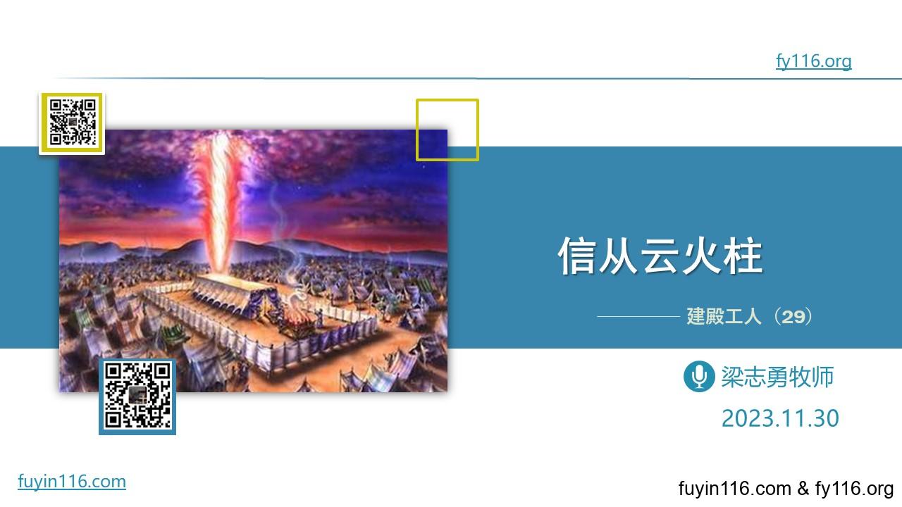我们为什么要跟从云柱火柱前行? 云火柱真正预表的是谁? 我们怎样才是正确的跟从基督? 信心的敌人是什么,信心又该怎样塑造? 愿上帝的祝福借着祂的真道,更多地临到每一个认真聆听的灵魂。 欢迎您收听: 《信从云火柱》 https://lmqf116.top/fubx 点击音频媒体前面的小三角“►”就可以播放 墙外观看: 我们的阿爸天父,感谢赞美你 感谢你赐给我们《圣经》真理,让我们可以领受你恩典和真理的祝福。 我们特别感谢你,赐给我们主基督;若没有主基督,我们所做的一切都毫无…