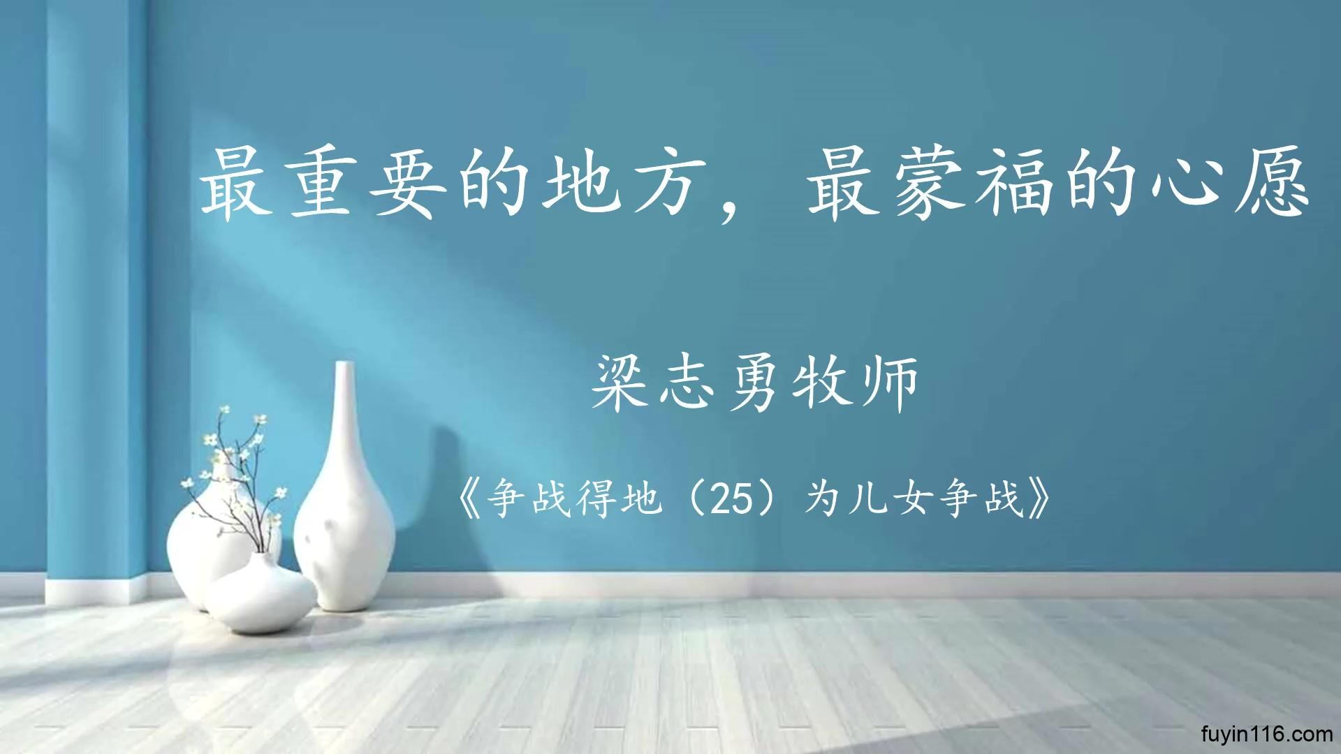 不要轻看你的家庭祭坛 也不要太重看人的软弱 当我们在家庭祭坛上 常常恳求主基督的祝福 甚愿主心在我家得满足 你的家庭就必要成为 改变世界的最重要地方 ——梁志勇《为儿女争战》 《争战得地(25)为儿女争战》 《福音布道》系列 《争战得地》系列 《福音观影会》系列 《旧约里的福音》系列 《祭坛系列》讲道 《因信称义》系列讲道(更新中) 《希伯来书》系列讲道(全) 《出埃及记》系列讲道(全) 《讲道信息》汇总 《梁牧清风》圣经默想 《五饼二鱼》讲道剪辑  …