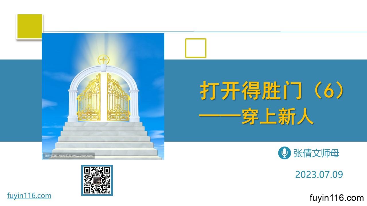 经上说,我们基督徒要“穿上新人”, 这“穿上新人”的意涵是什么? 我们该怎样“穿上新人”? “穿上新人”对我们的生活,有何重要的意义? 愿上帝的祝福借着祂的真道,更多地临到每一个认真聆听的灵魂。 欢迎您收听: 《穿上新人》 https://lmqf116.top/81dm 您也可以点击下面的链接,重温之前的信息: 《打开得胜门》系列 点击音频媒体前面的小三角“►”就可以播放 点击下面链接,观看讲道视频(因存储空间有限,zoom视频共享时间为2个月左右) 《穿…